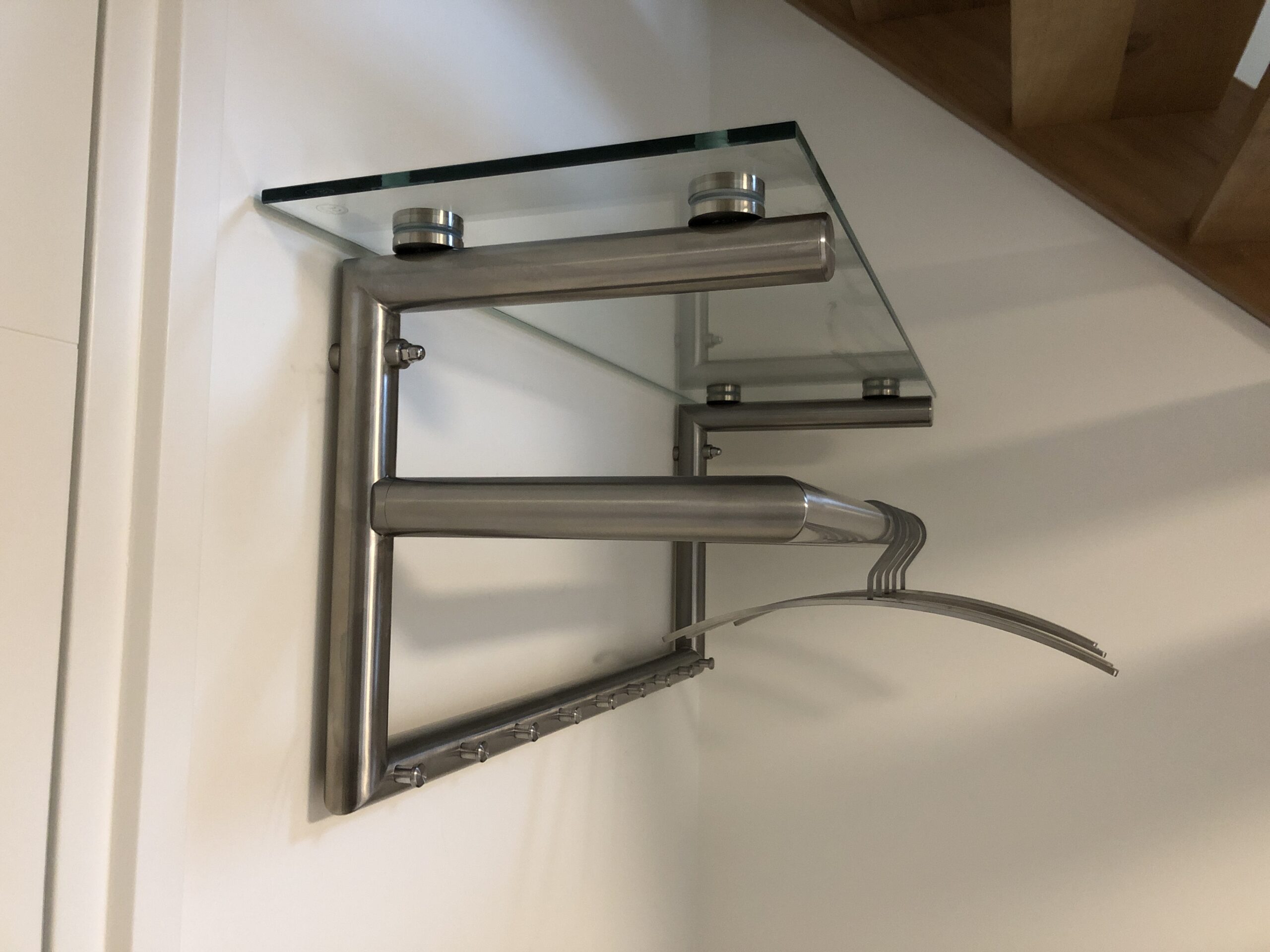 Een kapstok met glas combineert modern design met functionaliteit. Het roestvrij staal zorgt voor een strakke en duurzame uitstraling, terwijl glazen elementen een luxe en lichte Touch toevoegen. Deze kapstok is ideaal voor een stijlvolle entree en kan worden uitgevoerd met haken, stangen of een glazen hoedenplank. Perfect voor een minimalistisch en eigentijds interieur.